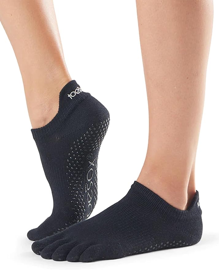 - Toe-less: Greater toe mobility while still providing grip to the foot sole and heel. Stimulates the foot-brain connection - but may not be allowed in studio classes due to bare toes on equipment.