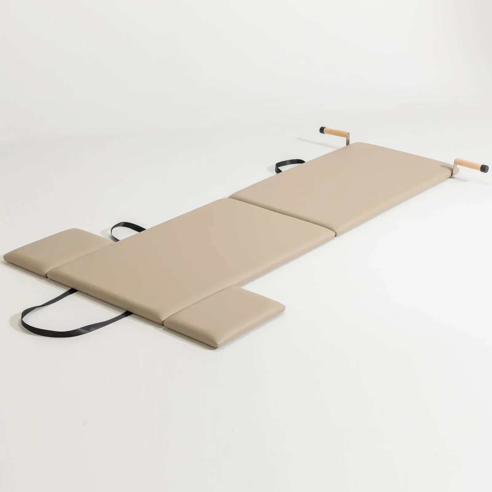 Classical mats adhere to Joseph Pilates’ original design, providing the structure and features intended for traditional Pilates exercises. These mats are thick and sturdy, with a solid base that supports precise movements. Equipped with handles and a footstrap, they offer anchoring points that help stabilize the body, making it easier to perform controlled and aligned movements.
